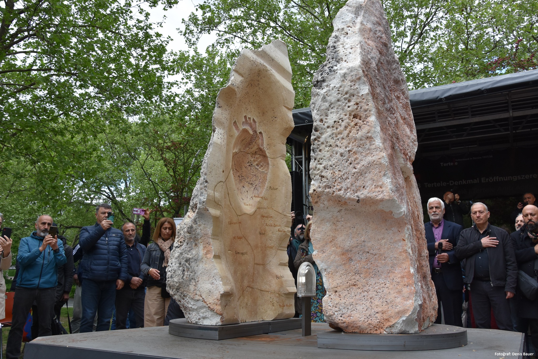 This monument is made from a large stone brought from Hozat, a site marked by the 1938 Dersim massacres. The stone becomes a vessel for memory, carrying collective trauma across geographies and into the present.